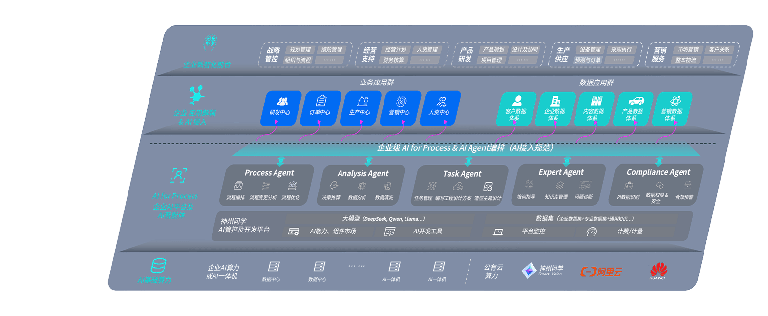 君临国际问学智车解决方案是一套基于AI技术的汽车行业智能化系统,,,覆盖从底层算力到顶层AI应用的全栈方案。。方案由算力层、、、模型层和应用层组成:算力层,,,方案支持多种一体机配置,,,具备云端灵活部署、、、、多云适配以及动态优化计算资源的能力;模型层,,,君临国际问学平台版提供了企业级AI应用一站式构建与管理平台,,,,支持基于后训练强化技术的汽车企业专属模型的训练、、、评测和运营;应用层,,君临国际问学DeepSeek版提供包括超级员工、、、智能招采、、智能营销、、智能客服、、、AI for BI等一系列解决方案,,可助力汽车行业实现数字化转型,,,让管理更智能、、、响应更敏捷。。