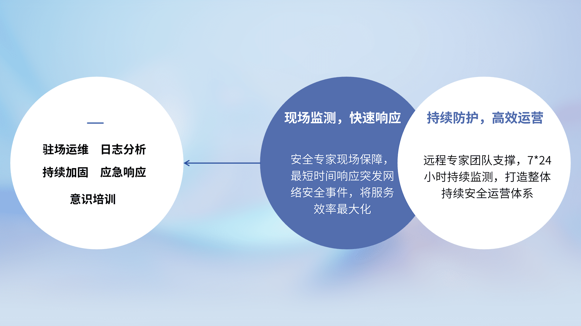 针对客户行业特性,,提供专属的一站式安全管理服务,,,,帮助客户全面感知网络空间威胁,,,通过安全专家的线上、、、线下防护支持,,,实现风险闭环,,将安全保障常态化,,为客户打造常态化安全运维运营服务。。。